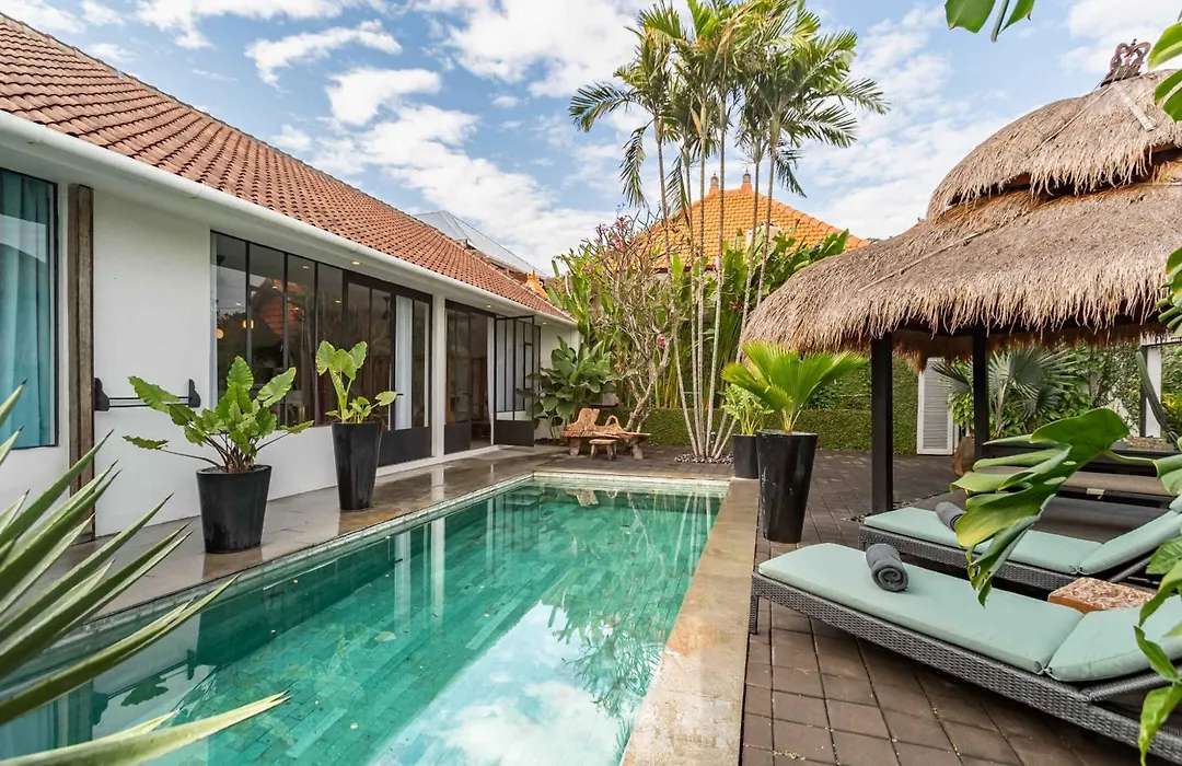 La Villa Ruku-Ruku - Modern 1Br Villa With Ac Living Room & Private Pool - French Style Interior cuenta con una cocina bien equipada con un hervidor eléctrico, una nevera y una tostadora para que tengas la oportunidad de cocinar. Este establecimiento está a 7 minutos a pie del restaurante Nook Umalas, donde los huéspedes pueden disfrutar de diversas comidas. Gracias a la parada de autobús Seminyak Garden - Line 4, situada justo al lado de la propiedad, los huéspedes pueden explorar Kerobokan fácilmente. Los huéspedes pueden alquilar bicicletas para explorar la zona o disfrutar de la máxima relajación con masaje de cabeza y un masaje de espalda.